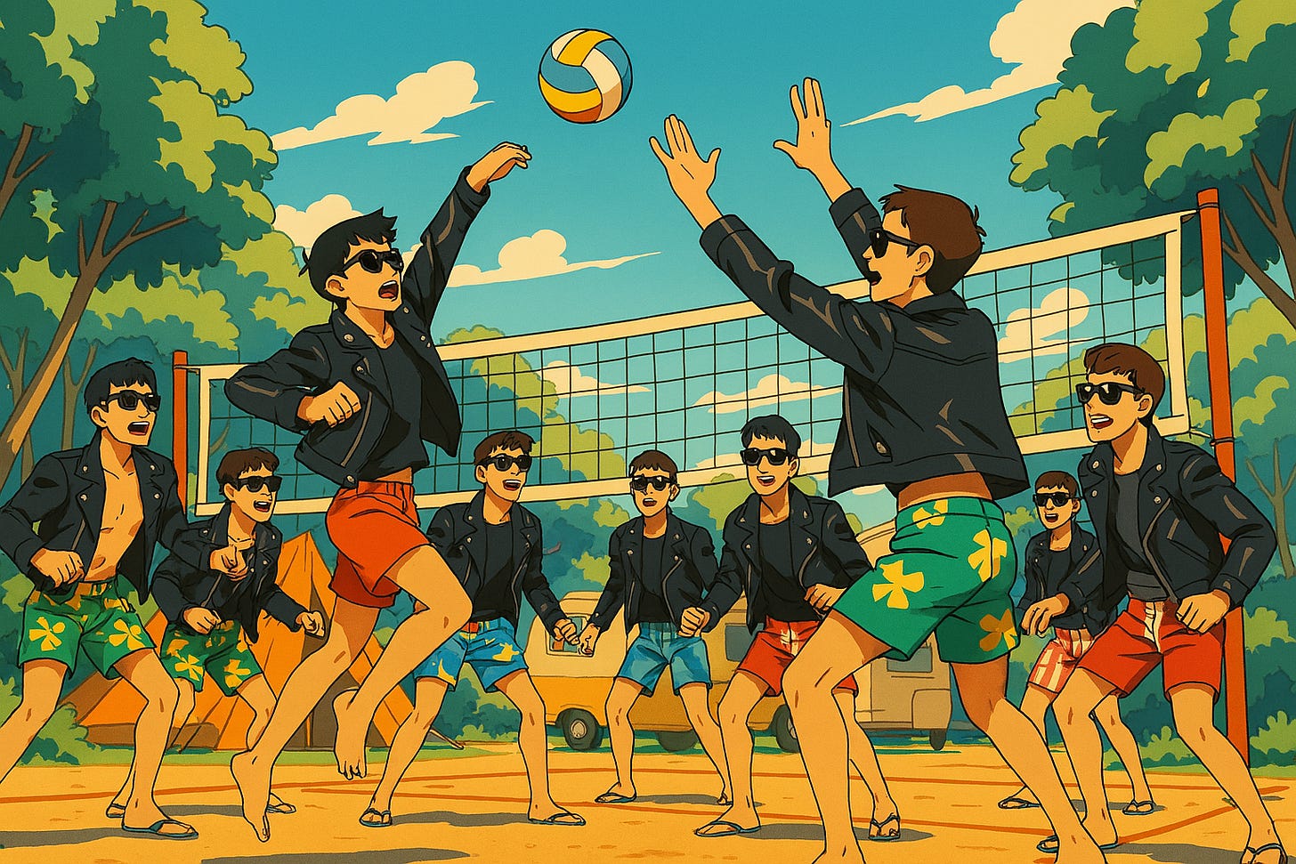 We swam in the pool. Played a massive six-band volleyball game. Had cookouts. Ate baguettes. Drank red wine. Borrowed each others toiletries.